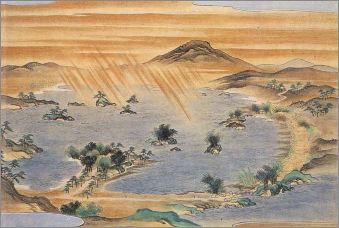 Kisakata, or Kisa lagoon, was a famous place in Akita back in the day. It was considered one of the most beautiful places in the country, in fact, known for the 99 islands. It was a beautiful lagoon with many small islands within. Poets and other travels had been visiting this area for generations to see the majesty of it.